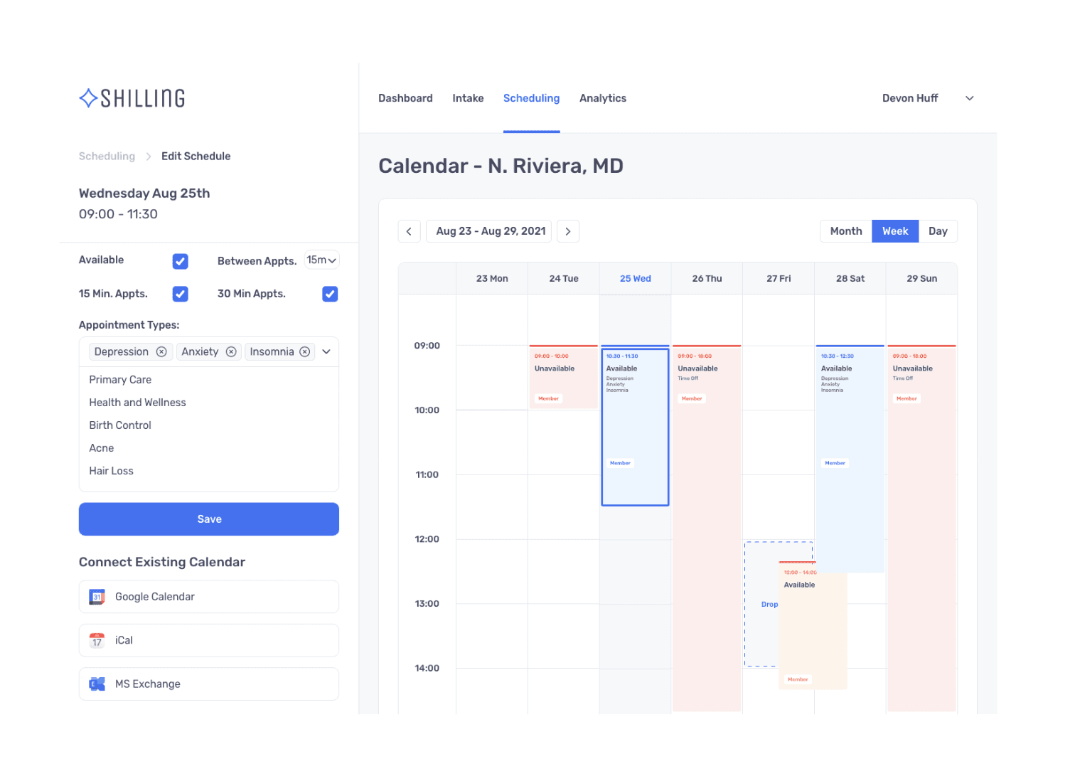 Provider scheduling platform used to manage availability across in-person and virtual appointments including utilisation analytics for ERP